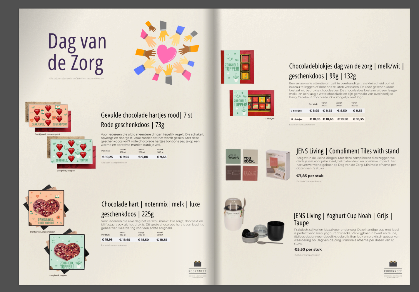 Ben je klaar om jouw zorgmedewerkers te verrassen tijdens de Dag van de Zorg? Bekijk onze brochure en ontdek de mogelijkheden. Staat er niet helemaal tussen wat je zoekt? Neem contact met ons op: info@koornneef.nl of 0174 420 383